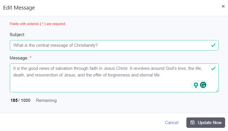 Note: You cannot edit any message after five minutes.