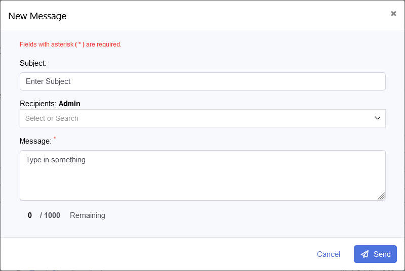 You can also send a new message by clicking Communication on the left menu and selecting Messages, then click New, fill out the form, and select Send