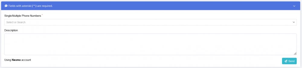 You can hide/unhide the SMS sending form section by click on Fields with asterisk (*) are required to hide/unhide